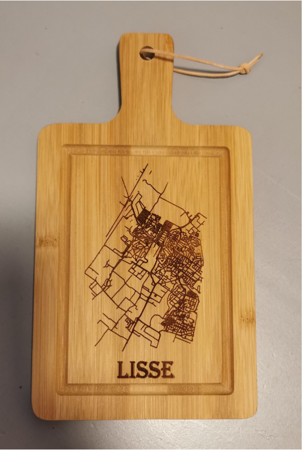 Stevige Kaasplankje / borrelplankje / tapasplankje, rechthoekig model gemaakt van stevig bamboe met Stad/dorp uitlijning plattegrond.