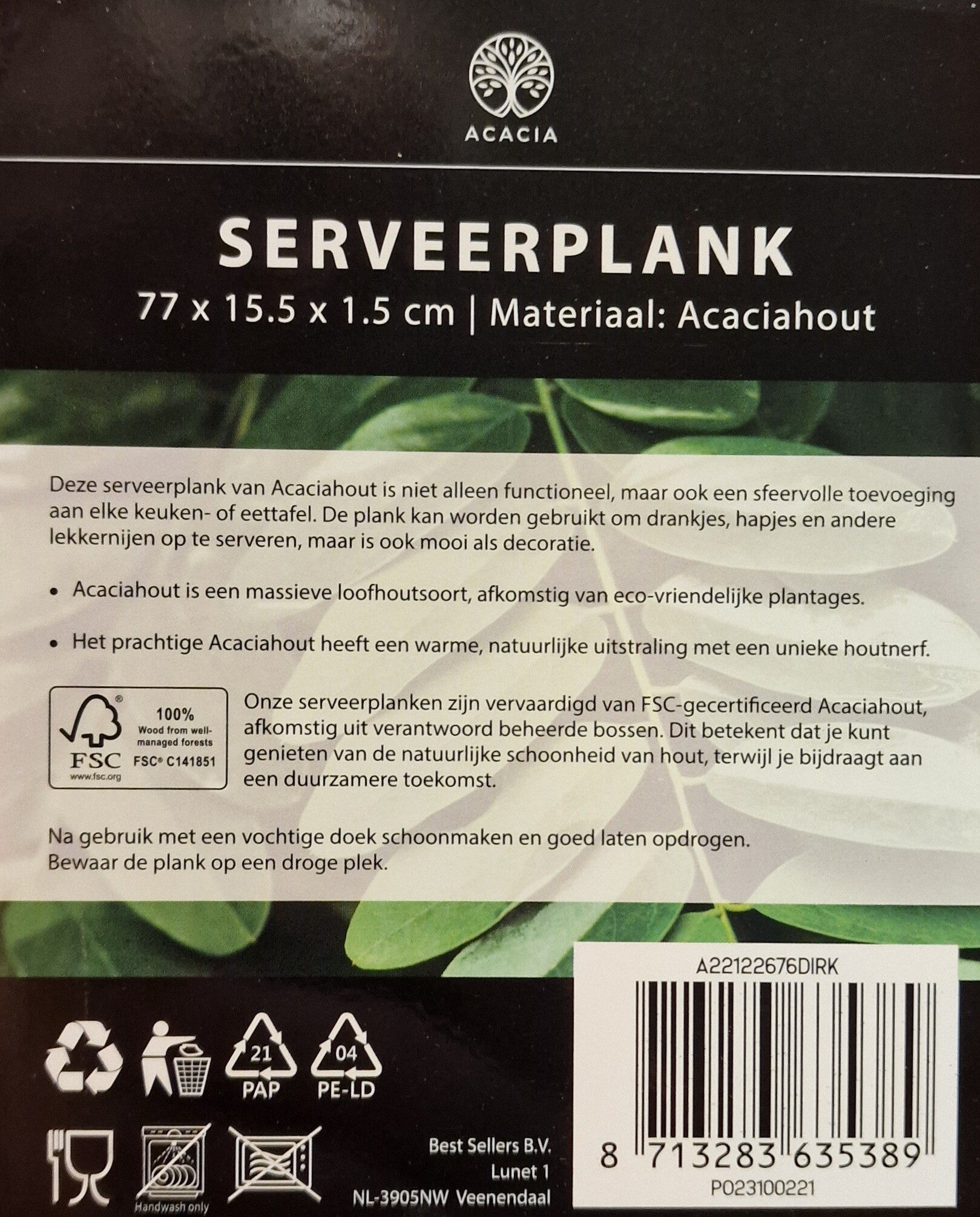 Gemaakt van FSC verandwoord Acacia.